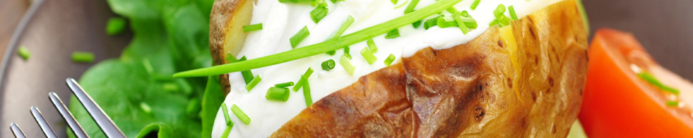 2 Kartoffelhälften mit verschiedenem Gemüse, Sour Cream & Käse überbacken